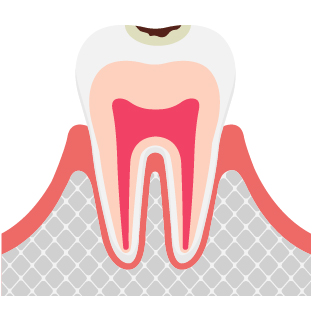◆ C2/神経に近い虫歯(エナメル質が侵される)