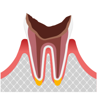 ◆ C4/歯が崩れた末期の虫歯(歯冠部まで侵される)