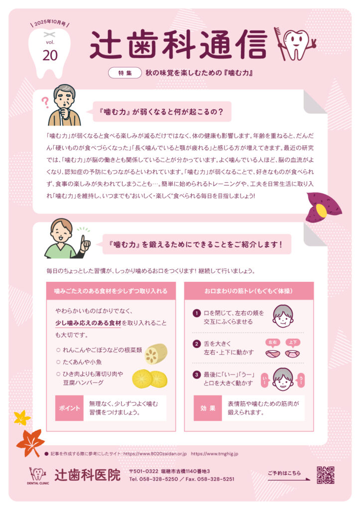 辻歯科通信 Vol.20 [2025.10月号] 2025.10.1 今月の辻歯科通信です。医院内にも掲示しておりますので、ぜひ御覧ください。PDFはこちら 辻歯科通信 Vol.19 [2025.9月号]前の記事